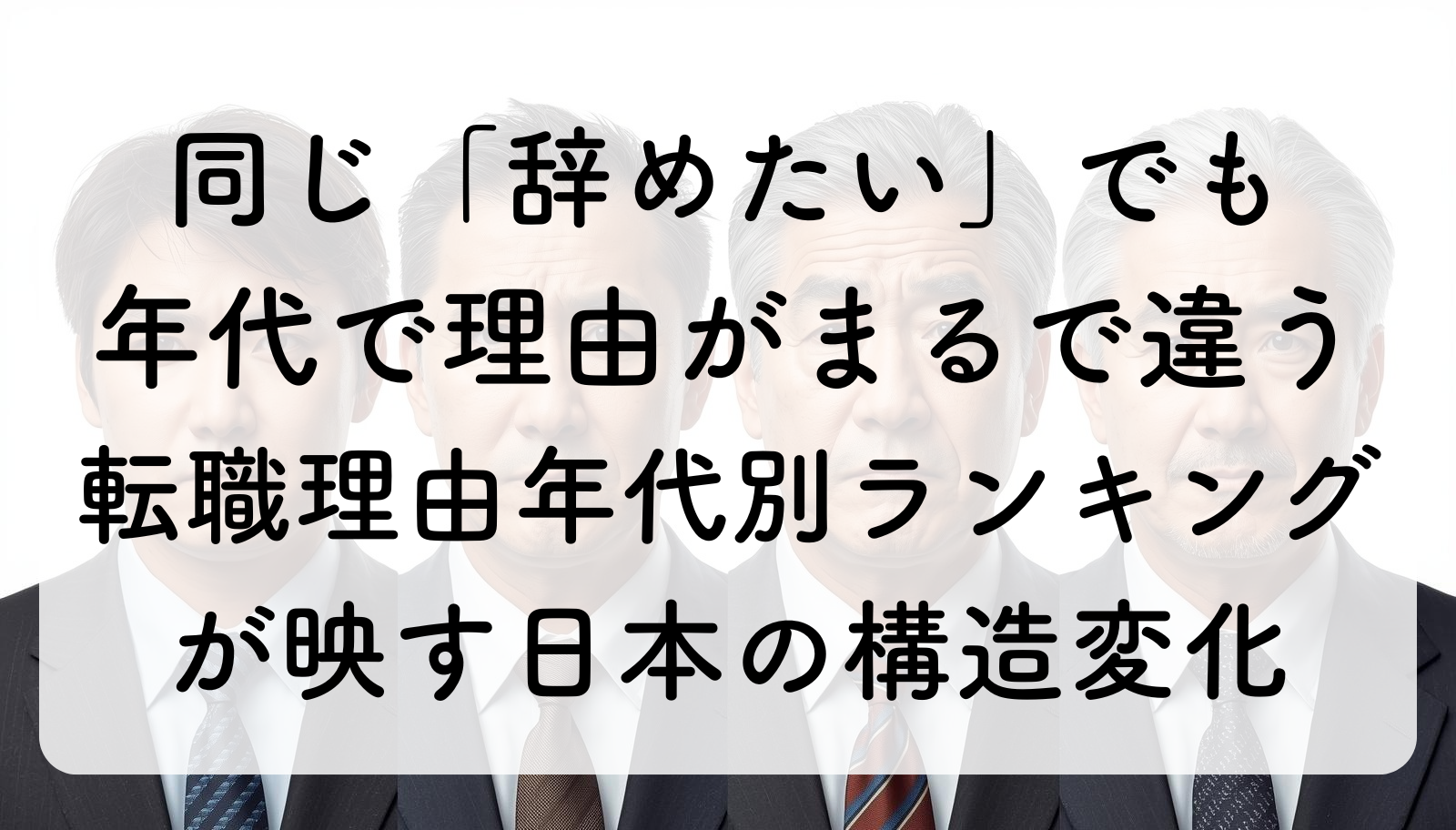 同じ「不満」でも、20代は「我慢する理由がないから辞める」、50代は「辞めたくないのに辞めさせられる」。この非対称性は、少子高齢化が生み出した構造的なものです。